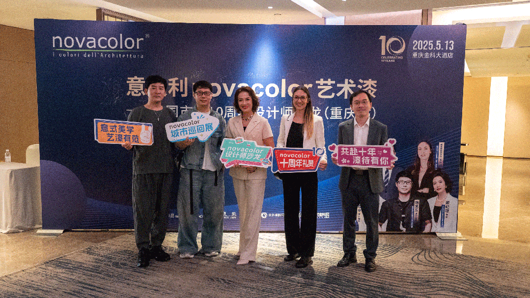 5月13日,"意大利Novacolor藝術(shù)漆——中國市場(chǎng)10周年設(shè)計(jì)師沙龍"在重慶隆重舉行,Novacolor亞太區(qū)負(fù)責(zé)人Valentina、Novacolor中國運(yùn)營中心CEO方立城、Novacolor重慶運(yùn)營中心負(fù)責(zé)人顏紀(jì)瓊、年代營創(chuàng)室內(nèi)設(shè)計(jì)有限公司創(chuàng)始人賴旭東、香港宗灝裝飾集團(tuán)首席設(shè)計(jì)師劉增申、辣么設(shè)計(jì)創(chuàng)始人雅雅,以及重慶本土設(shè)計(jì)師精英齊聚一堂,共同開啟了一場(chǎng)關(guān)于色彩、質(zhì)感與空間美學(xué)的深度對(duì)話。
