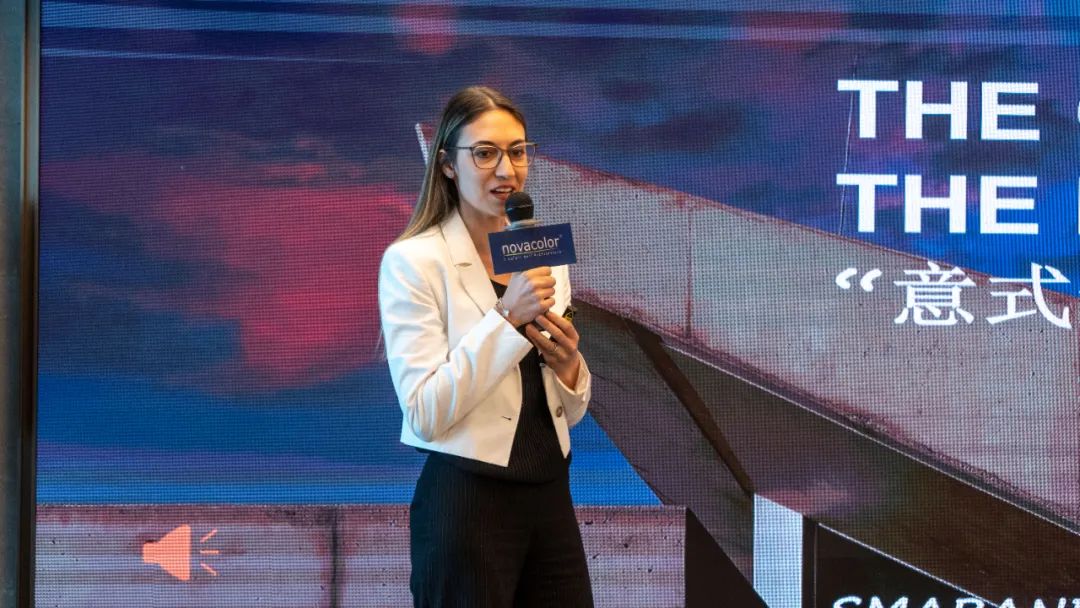 Novacolor亞太區(qū)負(fù)責(zé)人Valentina女士帶來了2025年度流行色——“Ecilipsia 日食橙”,并逐一展示了SIGNATURE COLLECTION 2025系列作品。