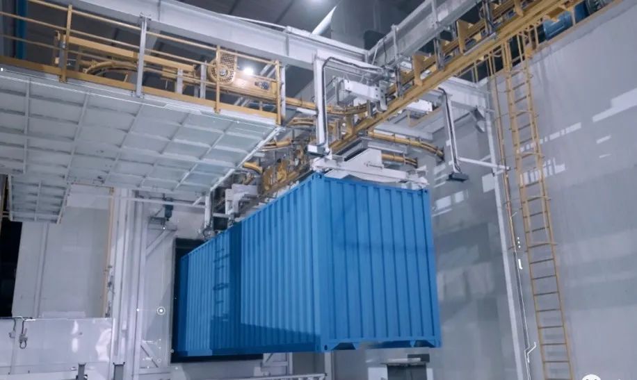 中集成功試產(chǎn)的這條集裝箱整箱全自動粉末涂裝生產(chǎn)試驗線實現(xiàn)了三大目標,一是質(zhì)量更優(yōu)。所有工藝參數(shù)完全實現(xiàn)自動控制,保證了集裝箱整體涂裝質(zhì)量的一致性。二是HSE全面達標。產(chǎn)線自動化運轉(zhuǎn),大幅減少了現(xiàn)場作業(yè)人員,降低了勞動強度,徹底顛覆了集裝箱“勞動密集型”的傳統(tǒng)生產(chǎn)模式。同時,作業(yè)過程實現(xiàn)人、機、料完全隔離,改變了“臟亂苦”,生產(chǎn)環(huán)境發(fā)生質(zhì)的飛躍。按照全行業(yè)年產(chǎn)300萬TEU測算,全面應用整箱粉末涂裝技術(shù),每年VOCs可減少1.4萬噸,廢水減少70.3萬噸,廢渣減少5.1萬噸,溫室氣體生產(chǎn)量減少80.2萬噸。三是成本更低,比傳統(tǒng)涂裝線節(jié)約用工成本達90%以上。