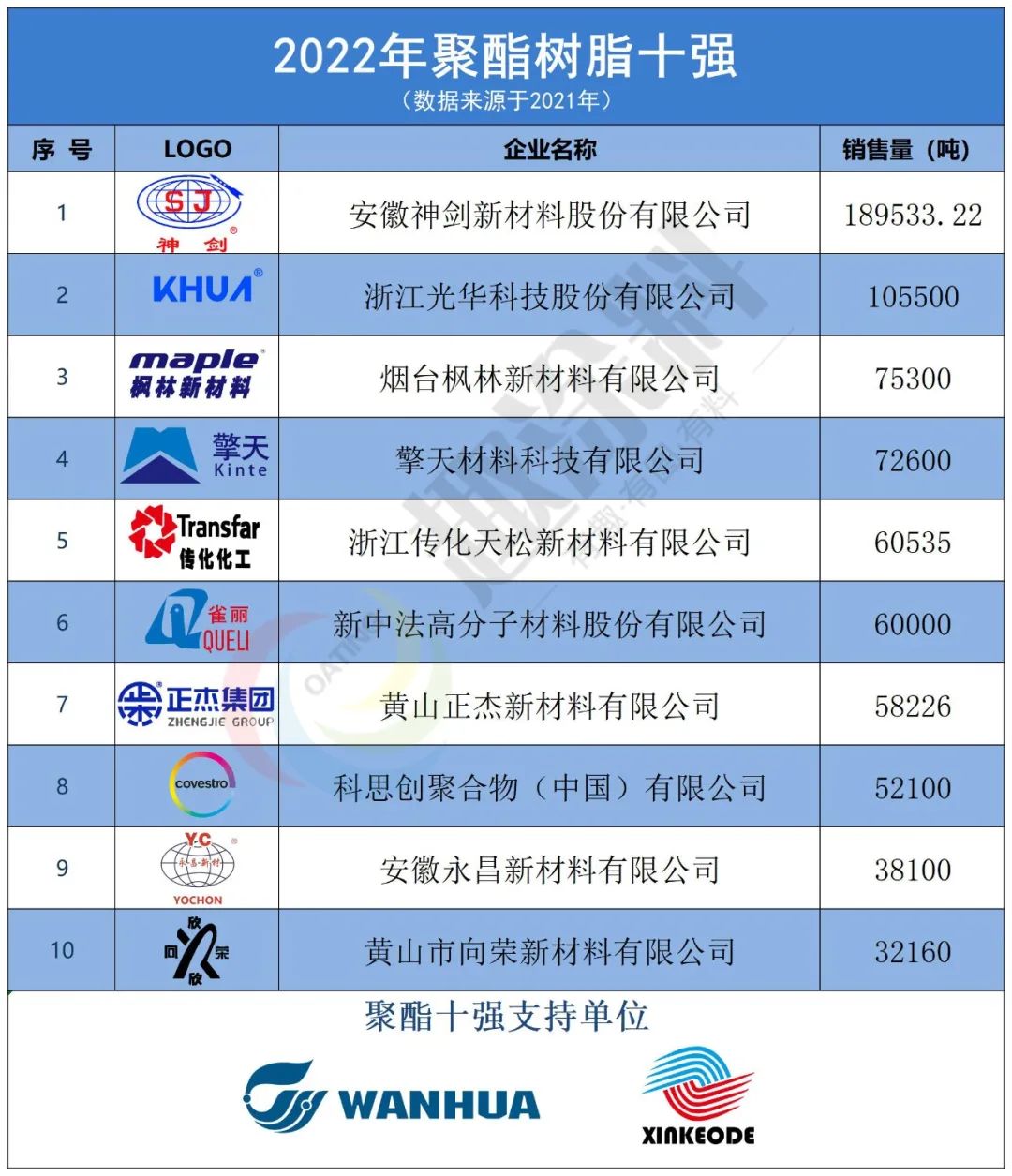 2月28日,2022年粉末聚酯十強排行榜出爐!根據(jù)趣涂料(趣涂網(wǎng))統(tǒng)計,粉末聚酯十強單位2021年共實現(xiàn)聚酯銷售量74.26萬噸,同比上一年62.35萬噸增長19.1%。按照2021年粉末用聚酯樹脂銷售量依次排名,十強單位分別是安徽神劍新材料、浙江光華、煙臺楓林新材料、擎天材料、浙江傳化天松新材料、新中法高分子材料、黃山正杰新材料、科思創(chuàng)樹脂(上海)、安徽永昌新材料、黃山市向榮新材料。