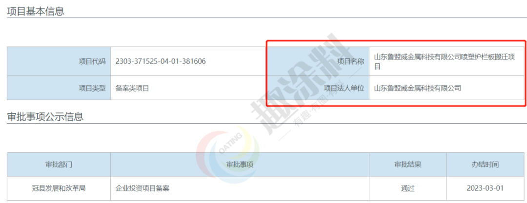 2023年2月28日,山東魯盟威金屬科技有限公司,噴塑護(hù)欄板搬遷項(xiàng)目,在冠縣發(fā)展和改革局,進(jìn)行企業(yè)投資項(xiàng)目備案。
