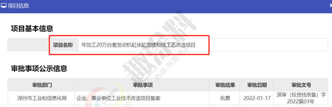 2022年1月17日,河北瑞豐科技有限公司,年加工20萬臺套發(fā)動機(jī)缸體缸蓋噴粉線工藝改造項(xiàng)目,在深州市工業(yè)和信息化局,進(jìn)行企業(yè)、事業(yè)單位工業(yè)技術(shù)改造項(xiàng)目備案。