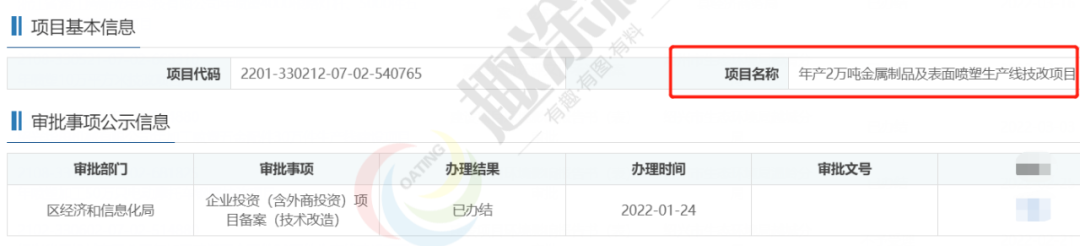 2022年1月24日,寧波利之源沖壓有限公司,年產(chǎn)2萬噸金屬制品及表面噴塑生產(chǎn)線技改項(xiàng)目,在區(qū)經(jīng)濟(jì)和信息化局,進(jìn)行企業(yè)投資(含外商投資)項(xiàng)目備案(技術(shù)改造)。