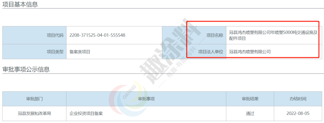 2022年8月5日,冠縣鴻杰噴塑有限公司,年噴塑5000噸交通設施及配件項目,在冠縣發(fā)展和改革局,進行企業(yè)投資項目備案。