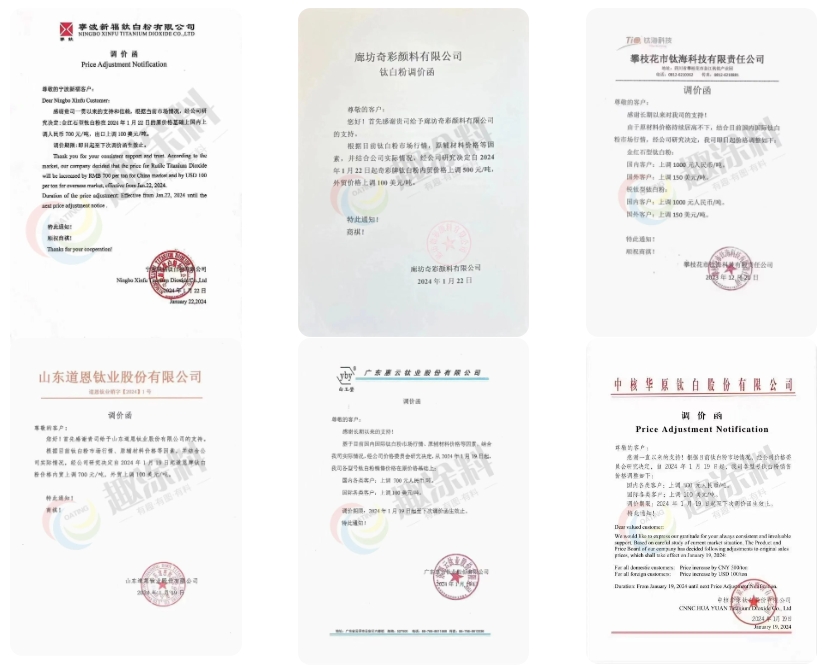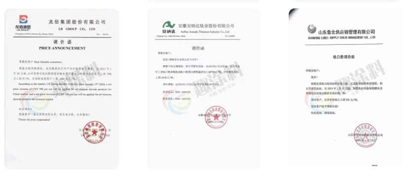 鈦白粉漲價函