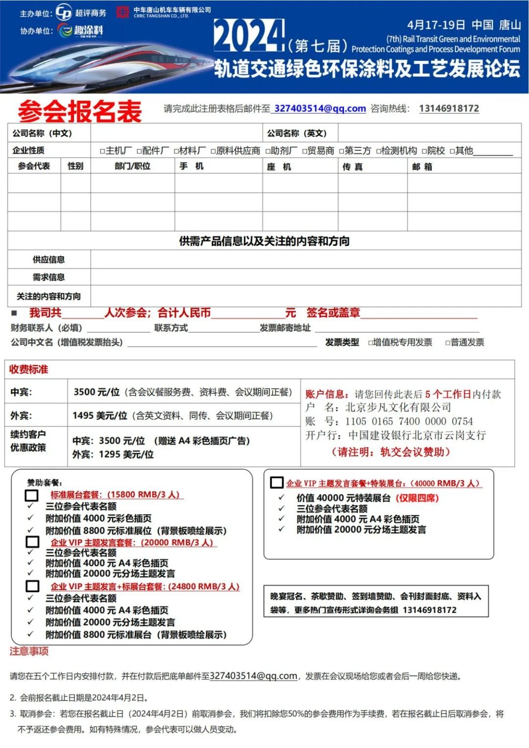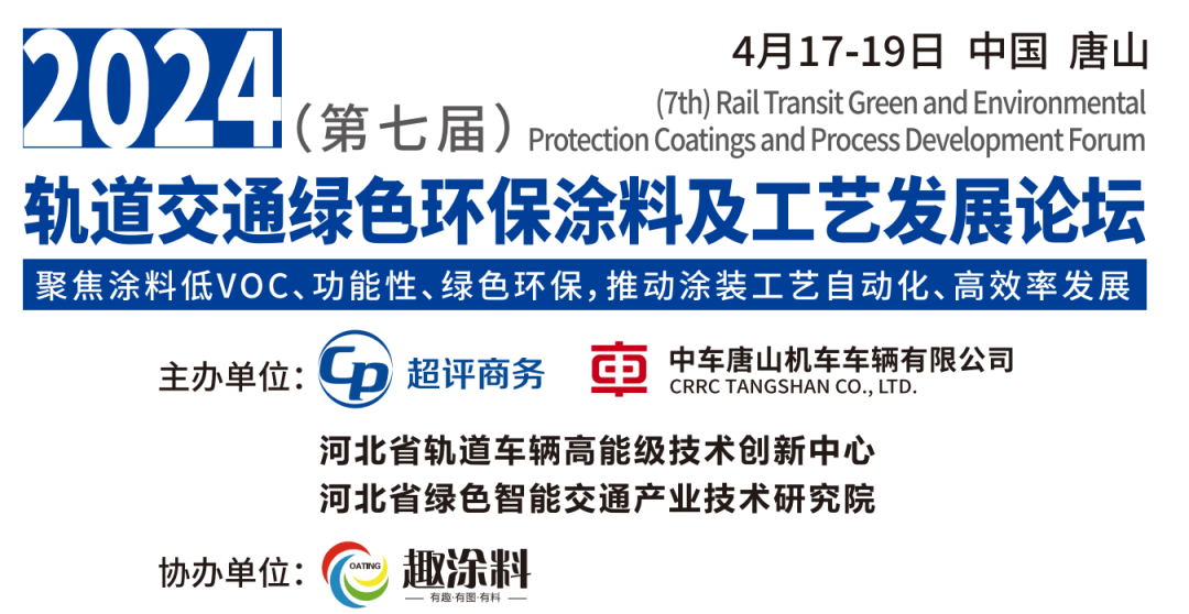 2024(第七屆)軌道交通綠色環(huán)保涂料及工藝發(fā)展論壇將于2024年4月17-19日在唐山舉行,為行業(yè)先鋒、業(yè)內(nèi)專家、材料企業(yè)、終端企業(yè)、科研機構(gòu)共同對話提供交流的平臺。