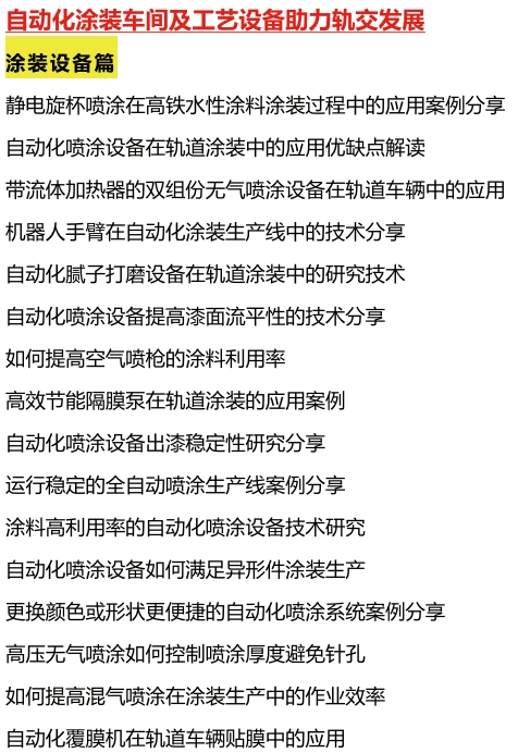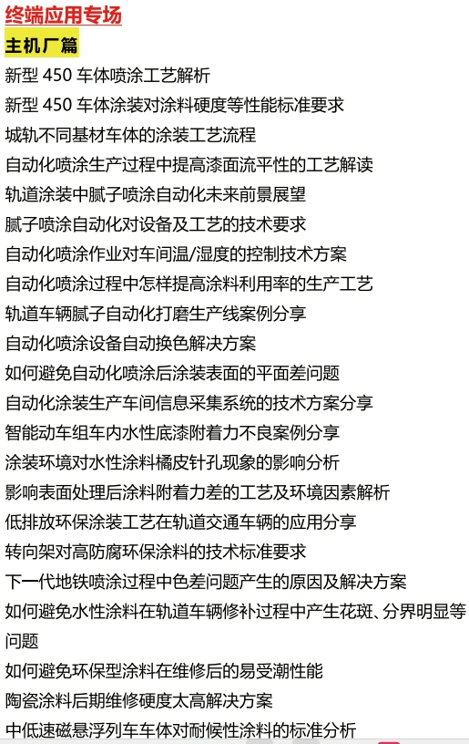 值得一提的是,本屆論壇主題鮮明。論壇聚焦涂料低VOC、功能性、綠色環(huán)保,推動涂裝工藝自動化、高效率發(fā)展。集中探討軌交涂料選材及涂裝產(chǎn)線建設,全面挖掘主機廠、配件廠深度需求;
