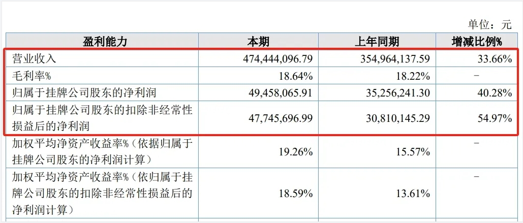 2023年,泰達(dá)新材實(shí)現(xiàn)營(yíng)業(yè)收入4.74億元,同比增長(zhǎng)33.66%;實(shí)現(xiàn)凈利潤(rùn)4945.81萬元,同比增長(zhǎng)40.28%;實(shí)現(xiàn)扣非后凈利潤(rùn)4774.57萬元,同比增長(zhǎng)54.97%。