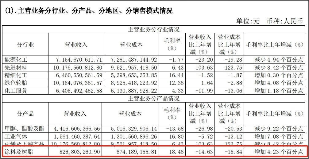 2023年,公司主要產(chǎn)品甲醇、醋酸及酯產(chǎn)量221.28萬(wàn)噸,營(yíng)業(yè)收入44.17億元;工業(yè)氣體產(chǎn)量122.55萬(wàn)千立方米,營(yíng)業(yè)收入15.64億元;丙烯及下游產(chǎn)品產(chǎn)量282.74萬(wàn)噸,營(yíng)業(yè)收入101.77億元;涂料及樹(shù)脂產(chǎn)量3.04萬(wàn)噸,營(yíng)業(yè)收入8.27億元;輪胎產(chǎn)量1450.93萬(wàn)條,營(yíng)業(yè)收入101.84億元。