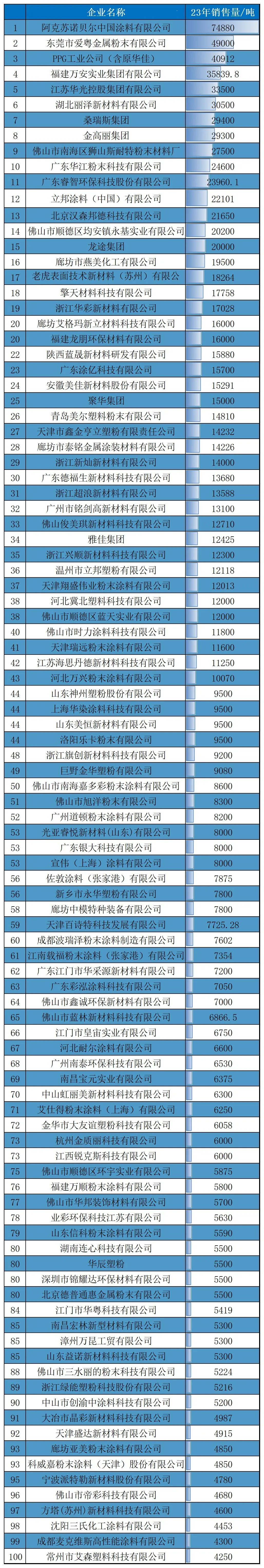 2024年粉末涂料百?gòu)?qiáng)榜出爐,這份榜單是由粉末涂料行業(yè)專業(yè)媒體平臺(tái)趣涂料(趣涂網(wǎng))編制,正杰集團(tuán)冠名。該評(píng)選活動(dòng)自今年年初啟動(dòng)以來(lái),全國(guó)粉末涂料生產(chǎn)企業(yè)踴躍報(bào)名參加。評(píng)選旨在發(fā)揮粉末涂料優(yōu)勢(shì)企業(yè)的榜樣作用,樹(shù)立中國(guó)粉末涂料的嶄新形象,推動(dòng)粉末涂料行業(yè)繁榮發(fā)展。一年一度,榜單基于企業(yè)2023年銷售規(guī)模進(jìn)行排序,而得出一個(gè)排名。