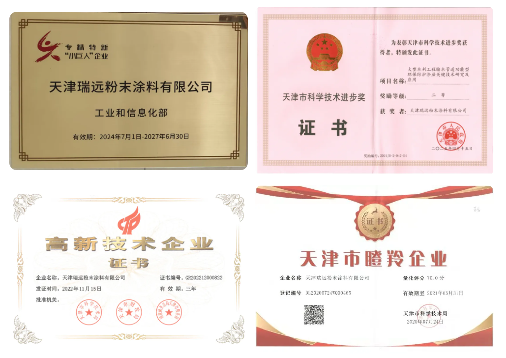 天津瑞遠,自2008年成立以來,便深耕于粉末涂料的研發(fā)、生產(chǎn)與銷售,成為目前國內(nèi)重防腐涂料行業(yè)規(guī)模最大、品種最齊全的生產(chǎn)廠家。公司的發(fā)展歷程,是一部不斷突破與創(chuàng)新的歷史。從最初的專業(yè)研究到如今的行業(yè)龍頭,天津瑞遠用17年的堅守與努力,鑄就了防腐粉末涂料領域的標桿地位。同時榮獲國家級高新技術企業(yè)、國家級小巨人企業(yè)、天津市綠色工廠,2025年大型水利工程項目獲天津市科技進步二等獎。