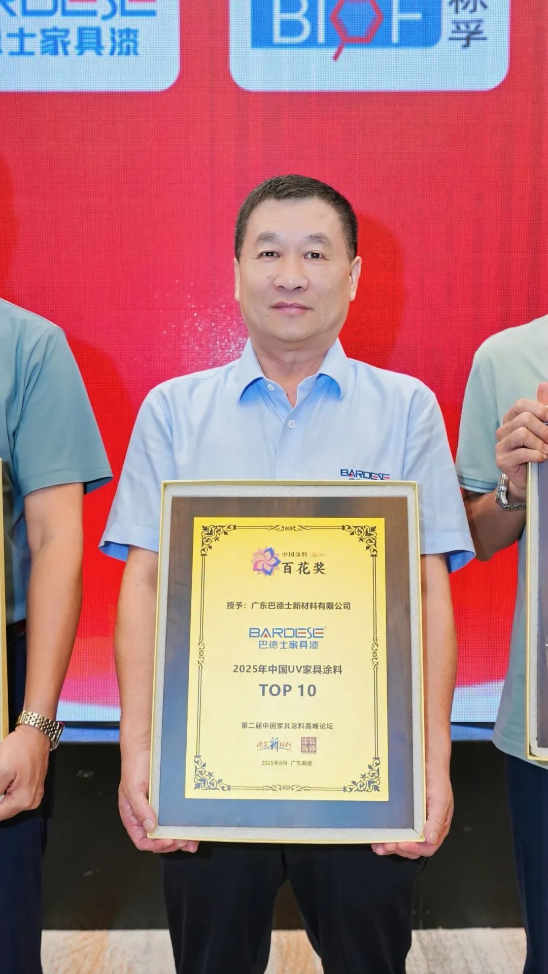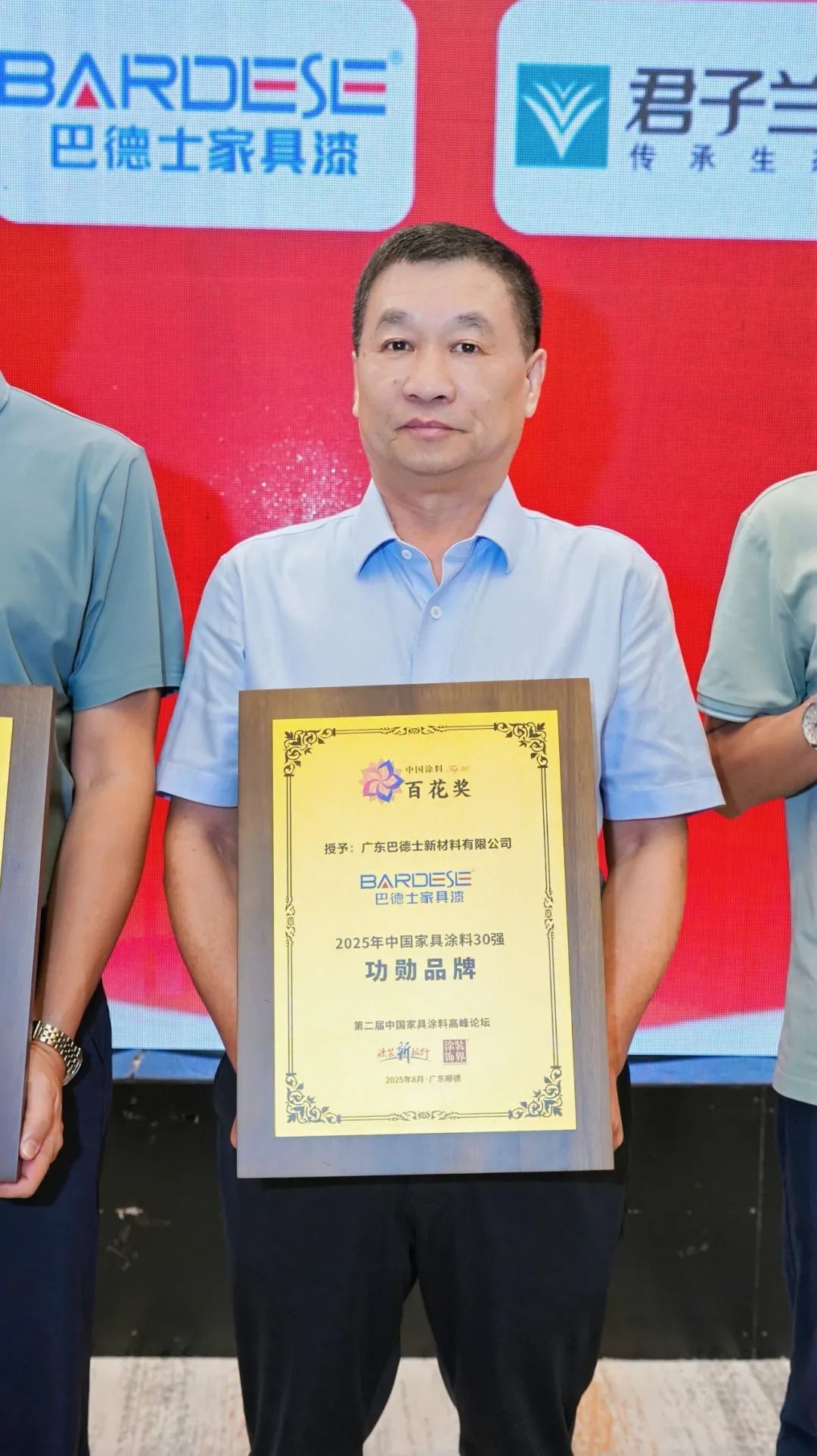巴德士集團(tuán)董事長(zhǎng)方學(xué)平受邀參加盛會(huì),并登臺(tái)參與啟動(dòng)“2025年中國(guó)家具涂料30強(qiáng)及子榜單”發(fā)布儀式。