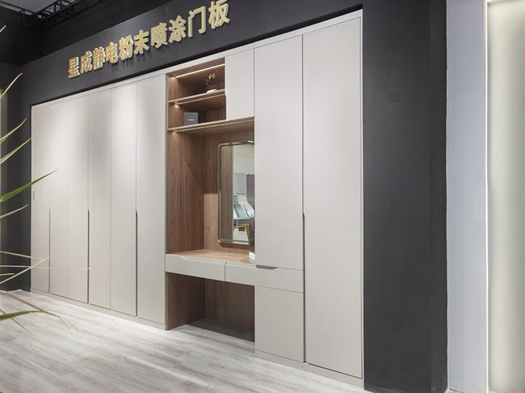 據(jù)企業(yè)介紹,星成的靜電噴粉“一體化工藝”可一步到位,除了批量生產(chǎn),還能讓板材在生產(chǎn)過(guò)程中避免甲醛等有害VOC污染,實(shí)現(xiàn)極致綠色環(huán)保。該項(xiàng)技術(shù)可應(yīng)用于櫥柜、衣柜、移門、陽(yáng)臺(tái)柜、浴室柜、書柜、電視柜等多柜門空間,與全屋定制企業(yè)的九大空間相適配。