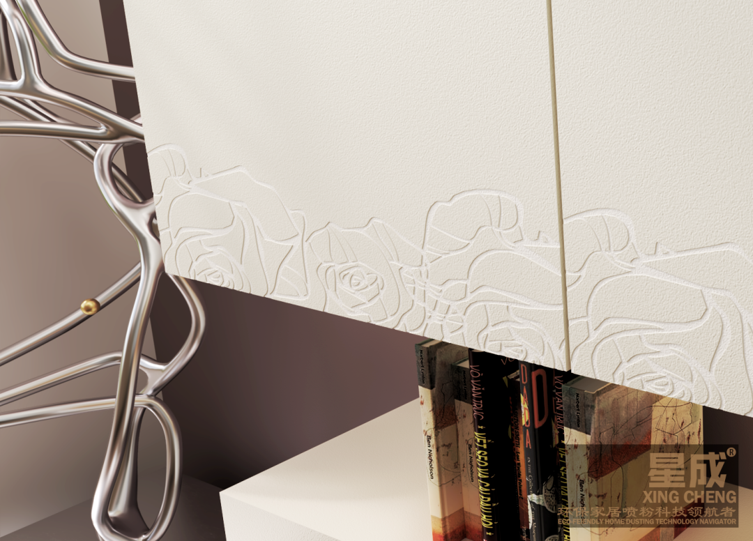 六面無(wú)縫噴粉工藝,無(wú)需封邊,滿足各種異型設(shè)計(jì),如不尋常的形狀、邊緣、凹凸和輪廓上,做暗拉手,從而實(shí)現(xiàn)富有想象力的新型基材設(shè)計(jì)和半成品組裝。