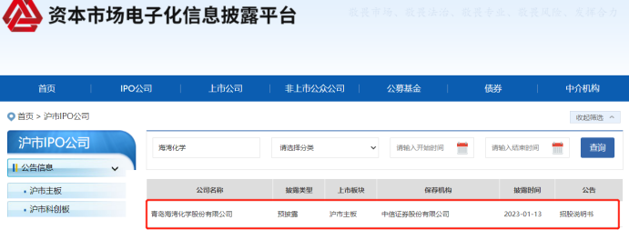 近日,據(jù)證監(jiān)會網(wǎng)站披露,青島海灣化學(xué)股份有限公司(下稱“海灣化學(xué)”) 首次公開發(fā)行股票的招股說明書,擬沖刺上交所IPO上市。