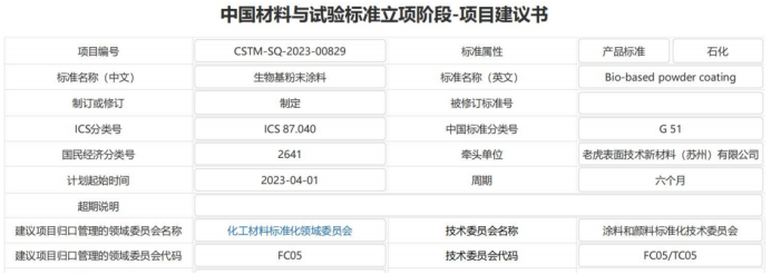 因此,老虎表面技術(shù)新材料(蘇州)有限公司牽頭制定的生物基粉未涂料相關(guān)的標(biāo)準(zhǔn),將對生物基粉未涂料的發(fā)展有著非常重要的意義。