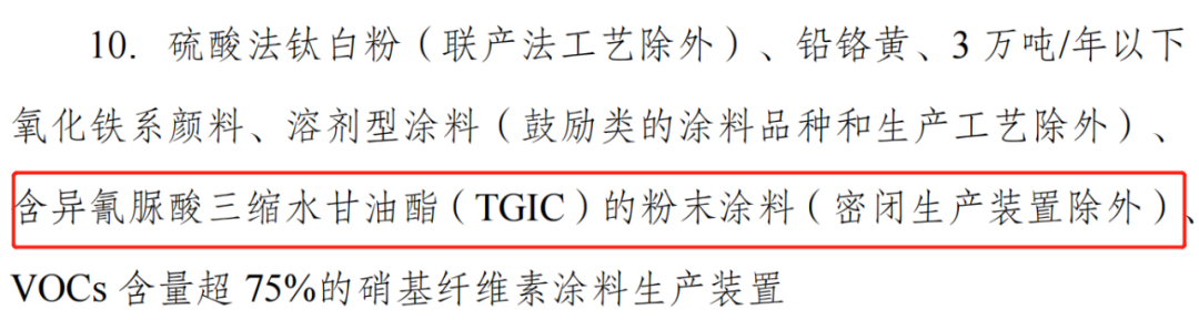這意味著,將為TGIC粉末涂料行業(yè)“松綁”,含異氰脲酸三縮水甘油酯(TGIC)的粉末涂料(密閉生產(chǎn)裝置除外)已不再是國家限制類產(chǎn)業(yè),這將對(duì)整個(gè)TGIC行業(yè)重大利好,粉末涂料也將迎來重大發(fā)展機(jī)遇。