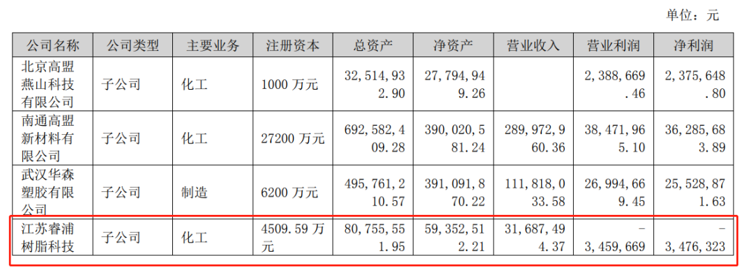 其中,旗下樹脂企業(yè)江蘇睿浦樹脂科技(下稱“江蘇睿浦”)2023年上半年實(shí)現(xiàn)營(yíng)業(yè)收入3168.75萬元,實(shí)現(xiàn)凈利潤(rùn)-347.63萬元。從數(shù)據(jù)上看,這個(gè)業(yè)績(jī)并不算佳。