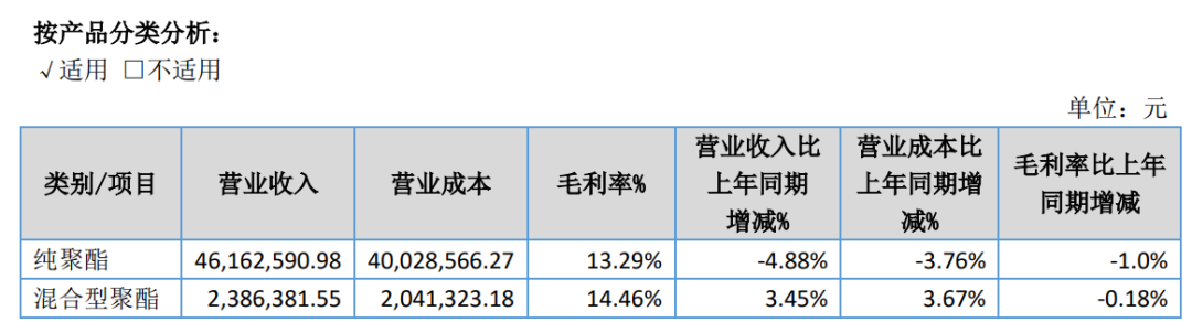 按照產(chǎn)品分類看,欣寶科技上半年純聚酯業(yè)務(wù)實(shí)現(xiàn)營業(yè)收入4616.26萬元,同比下滑4.88%;混合型聚酯實(shí)現(xiàn)營業(yè)收入238.64萬元,同比增長3.45%。