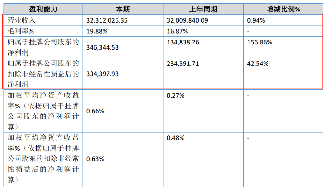 飛揚(yáng)科技2023年上半年實(shí)現(xiàn)營業(yè)收入3231.2萬元,同比增長0.94%;實(shí)現(xiàn)凈利潤34.63萬元,同比增長156.86%;實(shí)現(xiàn)扣非后凈利潤33.44萬元,同比增長42.54%。