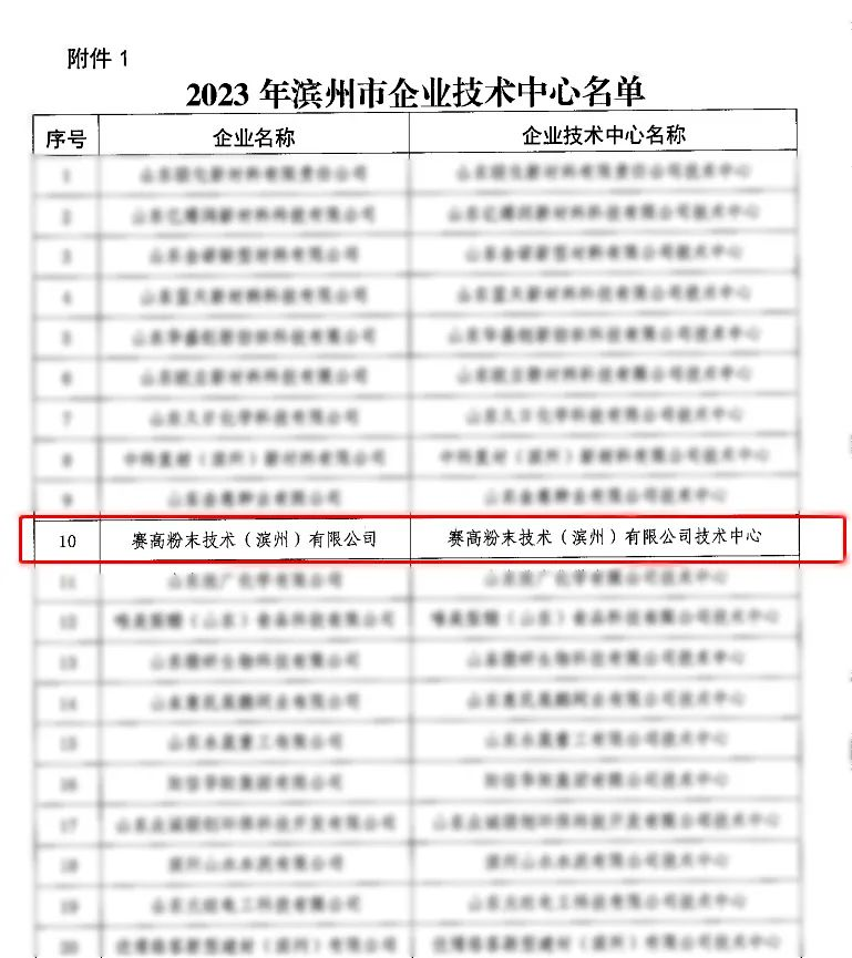近日,山東省濱州市發(fā)展和改革委員會對外公布《關(guān)于發(fā)布2023年新認定及全部濱州市企業(yè)技術(shù)中心名單的通知》。趣涂料(趣涂網(wǎng))注意到,經(jīng)審定,賽高粉末技術(shù)(濱州)有限公司(下稱“賽高”)被認定為具有濱州市企業(yè)技術(shù)中心資質(zhì)。