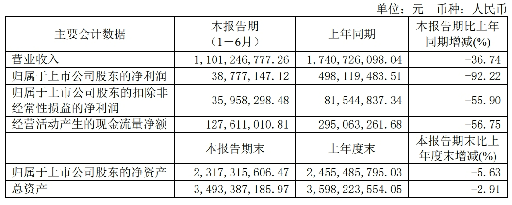半年報(bào)顯示,今年上半年宏昌電子實(shí)現(xiàn)營業(yè)收入11.01億元,同比上年度下降36.74%,實(shí)現(xiàn)歸屬于上市公司股東的凈利潤3877.71萬元,同比上年度下降92.22%。其中環(huán)氧樹脂業(yè)務(wù)方面實(shí)現(xiàn)凈利潤2423.7萬元;覆銅板、半固化片業(yè)務(wù)方面實(shí)現(xiàn)凈利潤 1472.07萬元。