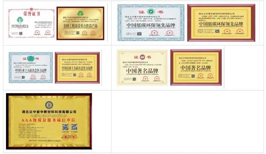 立中愛中粉末先后獲得全國工程建設(shè)重點推薦產(chǎn)品獎、中國低碳環(huán)保領(lǐng)先品牌、中國行業(yè)十大最具競爭力品牌和中國著名品牌等榮譽。