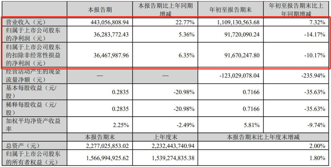 報告顯示,光華股份2023年前三季度實現(xiàn)營業(yè)收入11.09億元,同比增長7.32%;實現(xiàn)凈利潤9172.01萬元,同比下滑14.17%;實現(xiàn)扣非后凈利潤9167.02萬元,同比下滑10.17%。其中,光華股份第三季度實現(xiàn)營業(yè)收入4.43億元,同比增長22.77%;實現(xiàn)凈利潤3628.38萬元,同比增長5.36%;實現(xiàn)扣非后凈利潤3646.8萬元,同比增長6.35%。