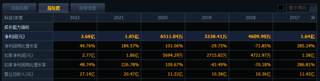 2020年至2022年,安納達(dá)營業(yè)收入分別為11.22億元、20.47億元和27.14億元,同比分別增長8.09%、82.49%和32.60%;凈利潤分別為6511.04萬元、1.85億元和2.68億元,同比分別增長101.06%、184.57%、44.76%。