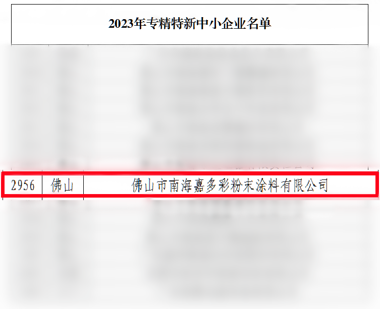 此次再次榮獲廣東省“2023年專精特新中小企業(yè)”稱號,是對嘉多彩在粉末涂料領(lǐng)域的綜合實力、專業(yè)程度和發(fā)展?jié)摿Φ母叨日J可,標志著公司即將邁上創(chuàng)新發(fā)展的新征程。