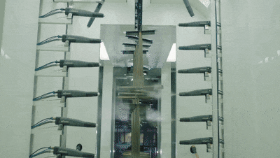 趣涂料(趣涂網(wǎng))了解到,圣奧集團(tuán)智能?chē)姺弁垦b線(xiàn)采用專(zhuān)門(mén)設(shè)計(jì)的布槍方式、運(yùn)載系統(tǒng)和生產(chǎn)流程,通過(guò)自動(dòng)掃描識(shí)別工件尺寸生成噴涂程序,使得產(chǎn)品品質(zhì)更高、換色更快、綠色環(huán)保、節(jié)能降耗。一體成型+立體噴涂,保證鋼制柜品質(zhì)更高、長(zhǎng)久耐用,更好適應(yīng)南北不同溫度、干濕氣候。