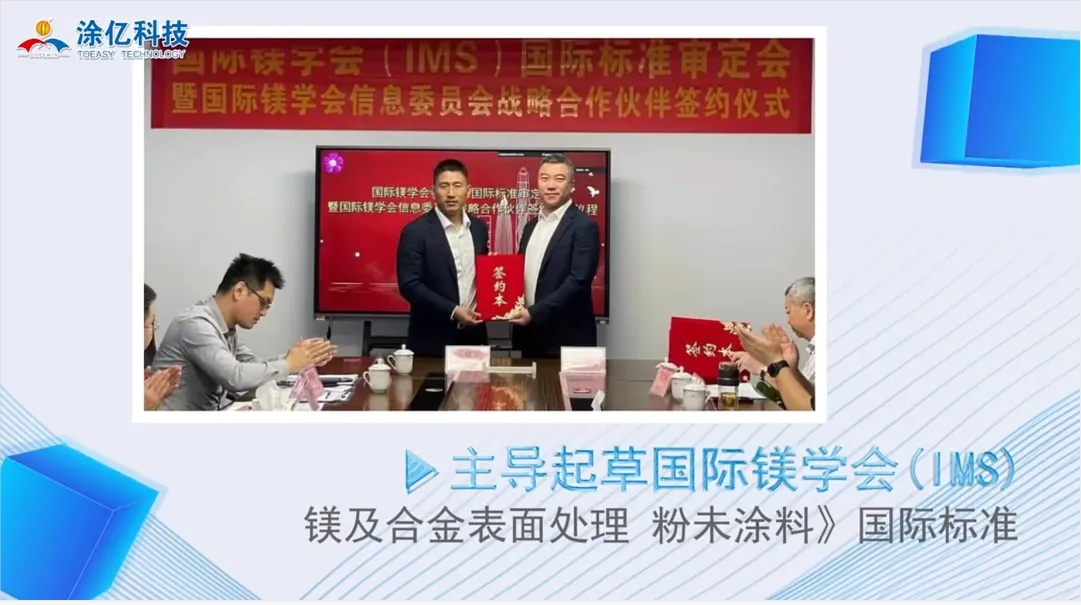 在積極推動(dòng)國內(nèi)粉末涂料標(biāo)準(zhǔn)化的同時(shí),涂億科技還積極參與國際標(biāo)準(zhǔn)的制定。在國際鎂學(xué)會(huì)(IMS)的平臺(tái)上,涂億科技主導(dǎo)起草了《鎂及合金表面處理 粉末涂料》國際標(biāo)準(zhǔn)。這一標(biāo)準(zhǔn)的制定,旨在為全球鎂及合金表面處理領(lǐng)域提供統(tǒng)一的技術(shù)規(guī)范和質(zhì)量要求,推動(dòng)行業(yè)的技術(shù)進(jìn)步和國際合作。通過參與國際標(biāo)準(zhǔn)的制定,涂億科技不僅展示了其在粉末涂料領(lǐng)域的領(lǐng)先地位,也為提升中國企業(yè)在全球舞臺(tái)上的影響力和話語權(quán)貢獻(xiàn)了自己的力量。