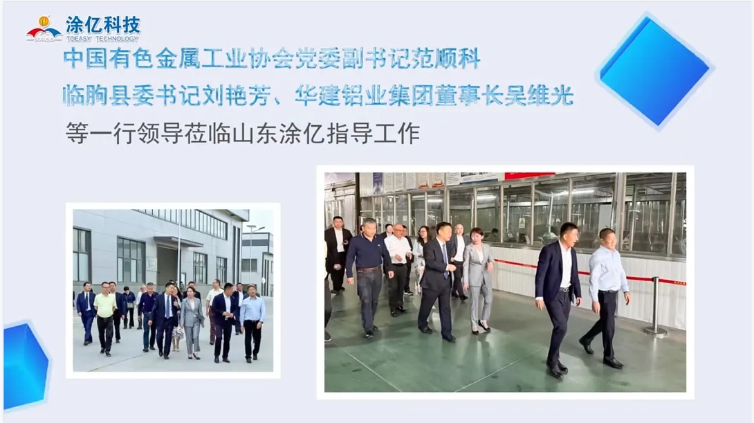 在這一年里,涂億公司還迎來了多位領(lǐng)導(dǎo)的蒞臨指導(dǎo)。其中包括中國有色金屬工業(yè)協(xié)會(huì)黨委副書記范順科、臨朐縣委書記劉艷芳以及華建鋁業(yè)集團(tuán)董事長吳維光等一行領(lǐng)導(dǎo)。他們的到訪不僅為涂億公司帶來了寶貴的行業(yè)經(jīng)驗(yàn)和建議,也進(jìn)一步提升了涂億公司在行業(yè)內(nèi)的知名度和影響力。