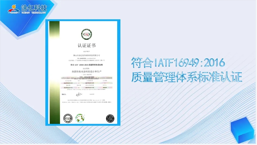 這些成果不僅體現(xiàn)了涂億科技在粉末涂料領(lǐng)域的專業(yè)實(shí)力和創(chuàng)新精神,更是對(duì)公司在推動(dòng)行業(yè)標(biāo)準(zhǔn)化、國際化方面所做努力的最好證明。