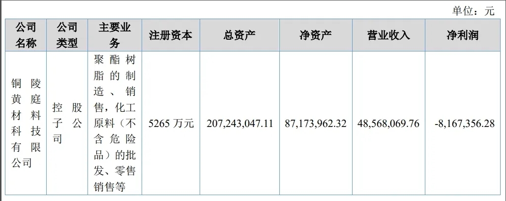 值得一提的是,雖然銅陵公司聚酯樹脂業(yè)務(wù)給泰達(dá)新材貢獻(xiàn)了營業(yè)收入,但是凈利潤卻是虧損狀態(tài)。年報顯示,銅陵公司2023年實現(xiàn)營業(yè)收入4856.81萬元,凈利潤虧損816.74萬元。截至2023年末,銅陵公司經(jīng)審計的資產(chǎn)總額為2.07億元,凈資產(chǎn)為8717.4萬元。
