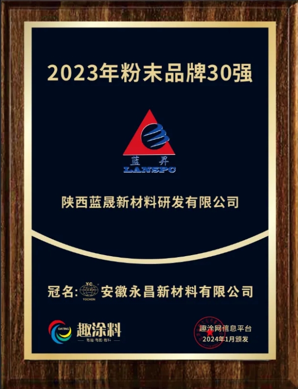 藍晟品牌連續(xù)多年榮獲行業(yè)粉末品牌30強