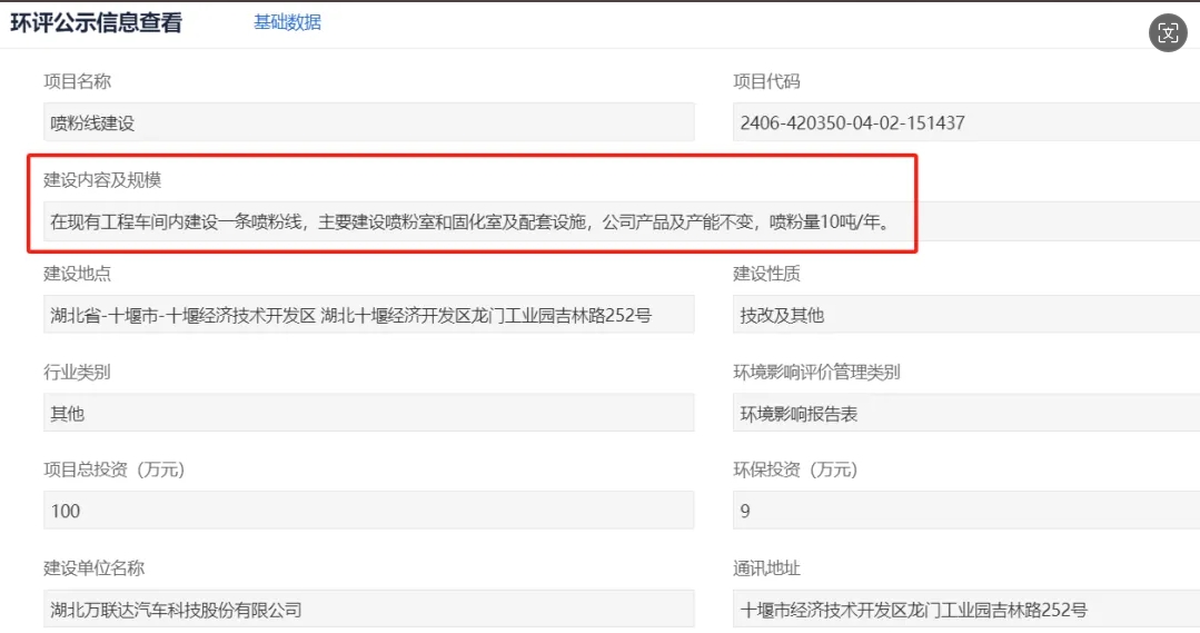近日,湖北省投資項(xiàng)目在線審批監(jiān)管平臺(tái)對(duì)外公示十堰市生態(tài)環(huán)境局經(jīng)濟(jì)技術(shù)開發(fā)區(qū)分局受理了湖北萬聯(lián)達(dá)噴粉線建設(shè)項(xiàng)目環(huán)境影響評(píng)價(jià)文件。