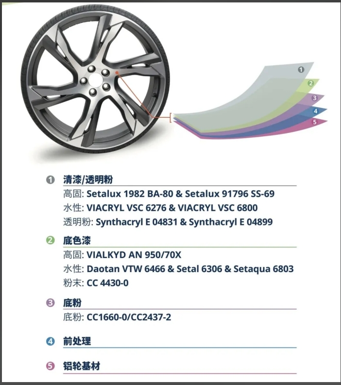 湛新為車轂的清漆提供了多種水性涂料、高固含涂料和透明粉涂料樹脂產(chǎn)品。