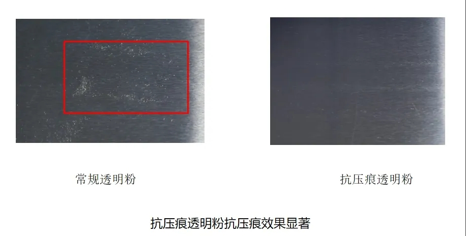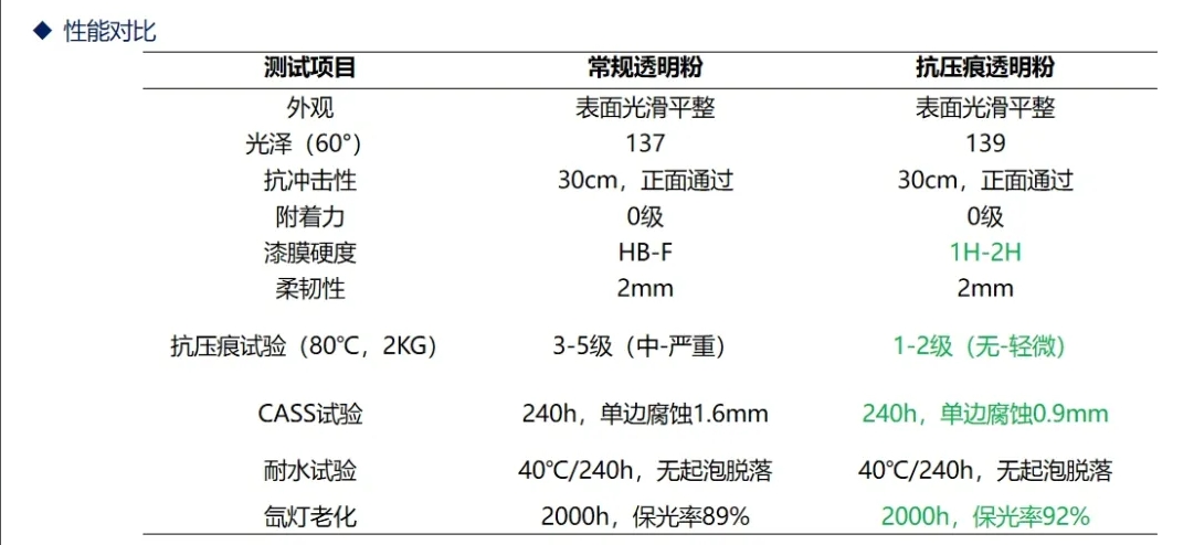 該產(chǎn)品常規(guī)性能與常規(guī)丙烯酸產(chǎn)品相當(dāng),完全滿足汽車鋁輪轂的日常罩光要求,但在抗壓痕方面,具有明顯優(yōu)勢。監(jiān)測數(shù)據(jù)顯示,在常規(guī)產(chǎn)品單程運輸壓痕比例高達60%的情況下,抗壓痕產(chǎn)品并未出現(xiàn)壓痕,改善效果明顯。