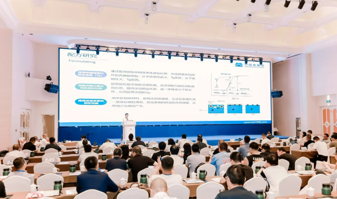 大會上,擎天材料做《汽車鋁輪轂抗壓痕丙烯酸透明粉末的研發(fā)》專題報告。