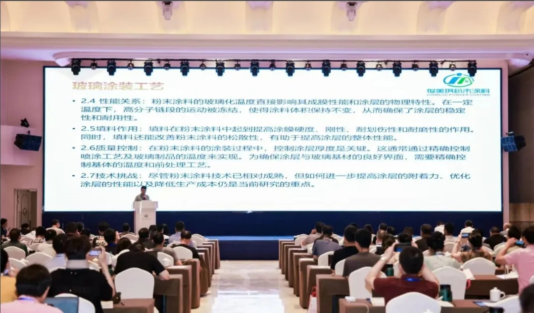 在大會(huì)的報(bào)告交流環(huán)節(jié),俊美琪總經(jīng)理汪千涵作題為《粉末涂料之玻璃涂裝》的演講,圍繞玻璃基材處理、玻璃涂裝工藝等要點(diǎn),深入分享了俊美琪在玻璃粉末涂裝領(lǐng)域的獨(dú)特觀點(diǎn),為現(xiàn)場(chǎng)觀眾帶來(lái)一場(chǎng)深刻的技術(shù)交流盛宴。