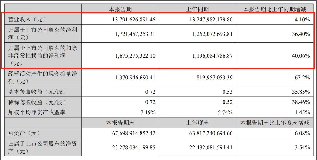 趣涂料(趣涂網(wǎng))了解到,8月29日,龍佰集團(tuán)發(fā)布半年報指出,2024年上半年,公司實現(xiàn)營收137.92億元,同比增長4.1%;凈利潤17.21億元,同比增長36.4%;利潤總額21.14億元,同比增長34.96%;基本每股收益0.72元,同比增長35.85%。