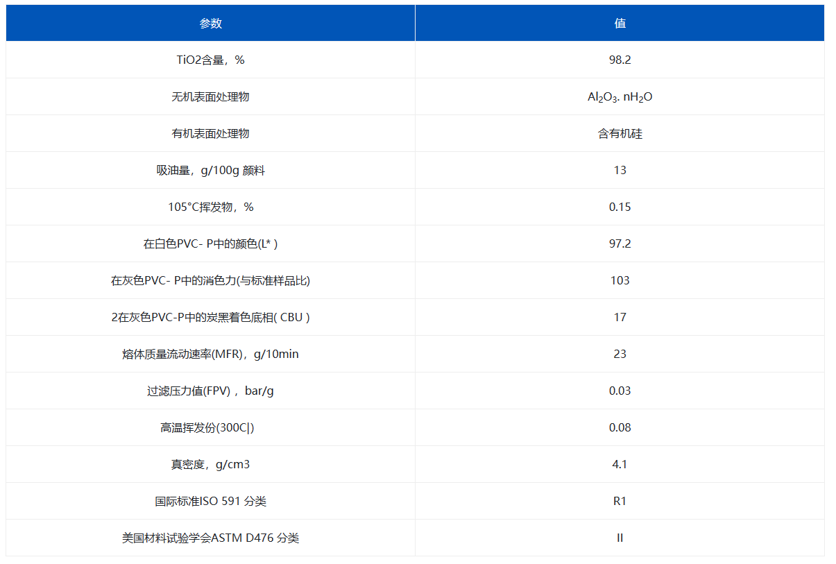 注:1、在鈦白粉含量為4PHR的含增塑劑聚氯乙烯體系(PVC-P)中測試。