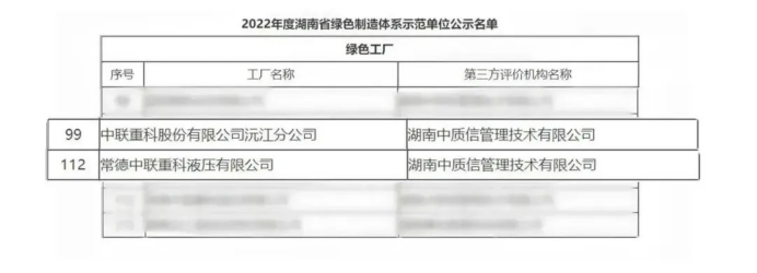 近日,湖南省工信廳公示了2022年度湖南省綠色制造體系示范單位名單,全省共136家企業(yè)的工廠園區(qū)入選“綠色工廠”名單。其中,中聯(lián)重科沅江分公司和常德中聯(lián)重科液壓有限公司雙雙入選。