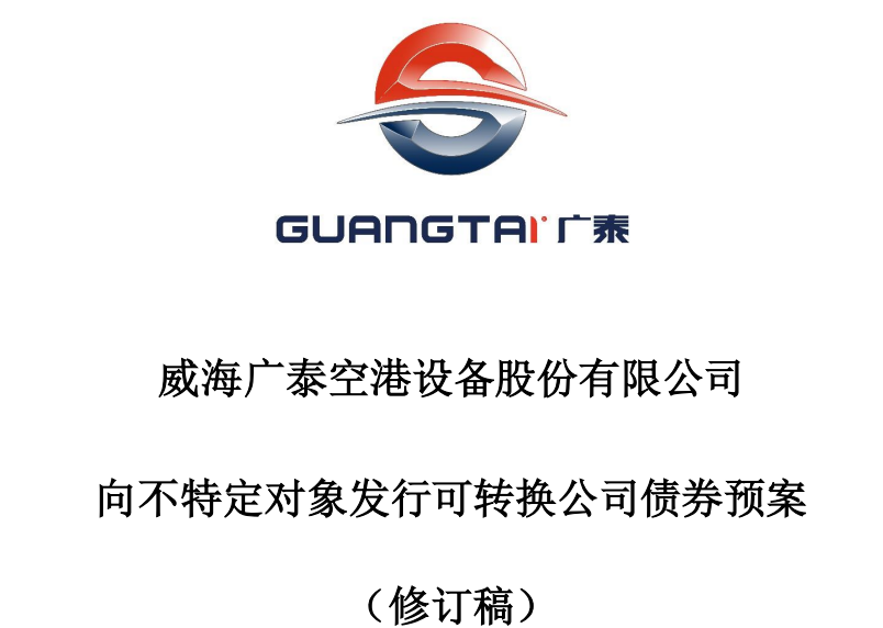 2023年2月25日,威海廣泰空港設(shè)備股份有限公司(下稱“威海廣泰”)對外發(fā)布《向不特定對象發(fā)行可轉(zhuǎn)換公司債券預案(修訂稿)》。