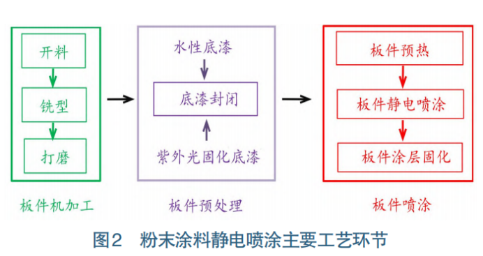 (1)研制粉末涂料靜電噴涂專用纖維板并制定相關(guān)標(biāo)準,對板材含水率、密度及其均勻性、熱穩(wěn)定性要進行嚴格控制;研發(fā)可直接靜電噴涂的纖維板或其他木質(zhì)材料新產(chǎn)品,克服板件需進行底漆封閉的弊端。