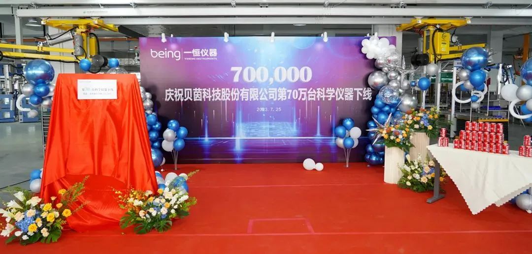 7月25日貝茵科技在新建智能車間慶祝公司第70萬臺科學(xué)儀器下線。這對于貝茵科技來說是一個巨大的里程碑,不僅標志著公司長期以來在創(chuàng)新和技術(shù)上的領(lǐng)先地位,也標志著用戶對貝茵品牌和一恒品牌的認可與信賴。